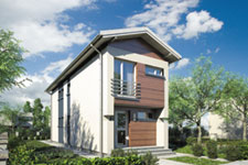Grupa projektów na wąską działkę reprezentuje projekty, w których projektanci uwzględnili w funkcji niewielką szerokość domu. By zachować wszelkie niezbędne do wygodnego użytkowania takiego domu rozwiązania, należy szczególna troską otoczyć rozkład pomieszczeń i zadbać o zachowanie odpowiednich proporcji bryły.